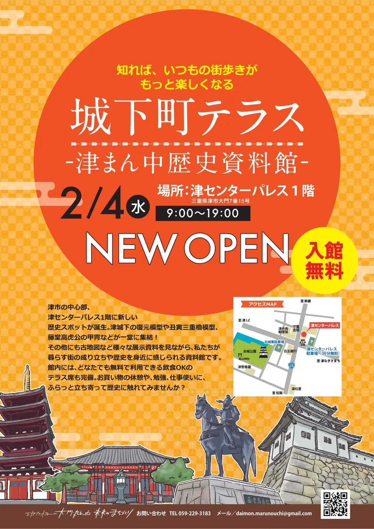 2026年2月4日(水)津センターパレス1階に新たなスポット「城下町テラス ー津まん中歴史資料館ー」がオープンしたようです!