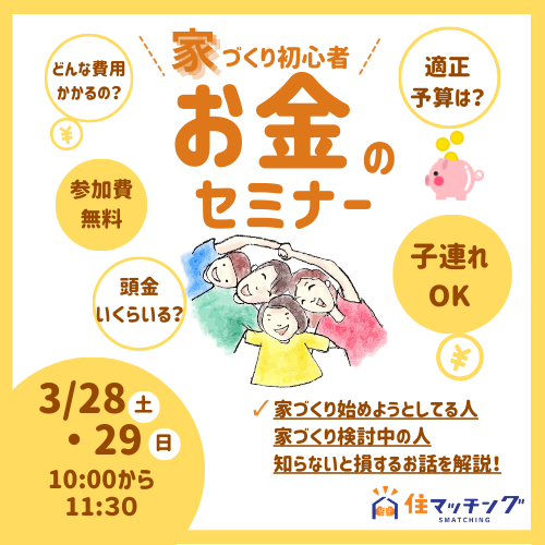 また、3月28日(土)と29日(日)には「家づくり初心者お金のセミナー」も開催予定です。