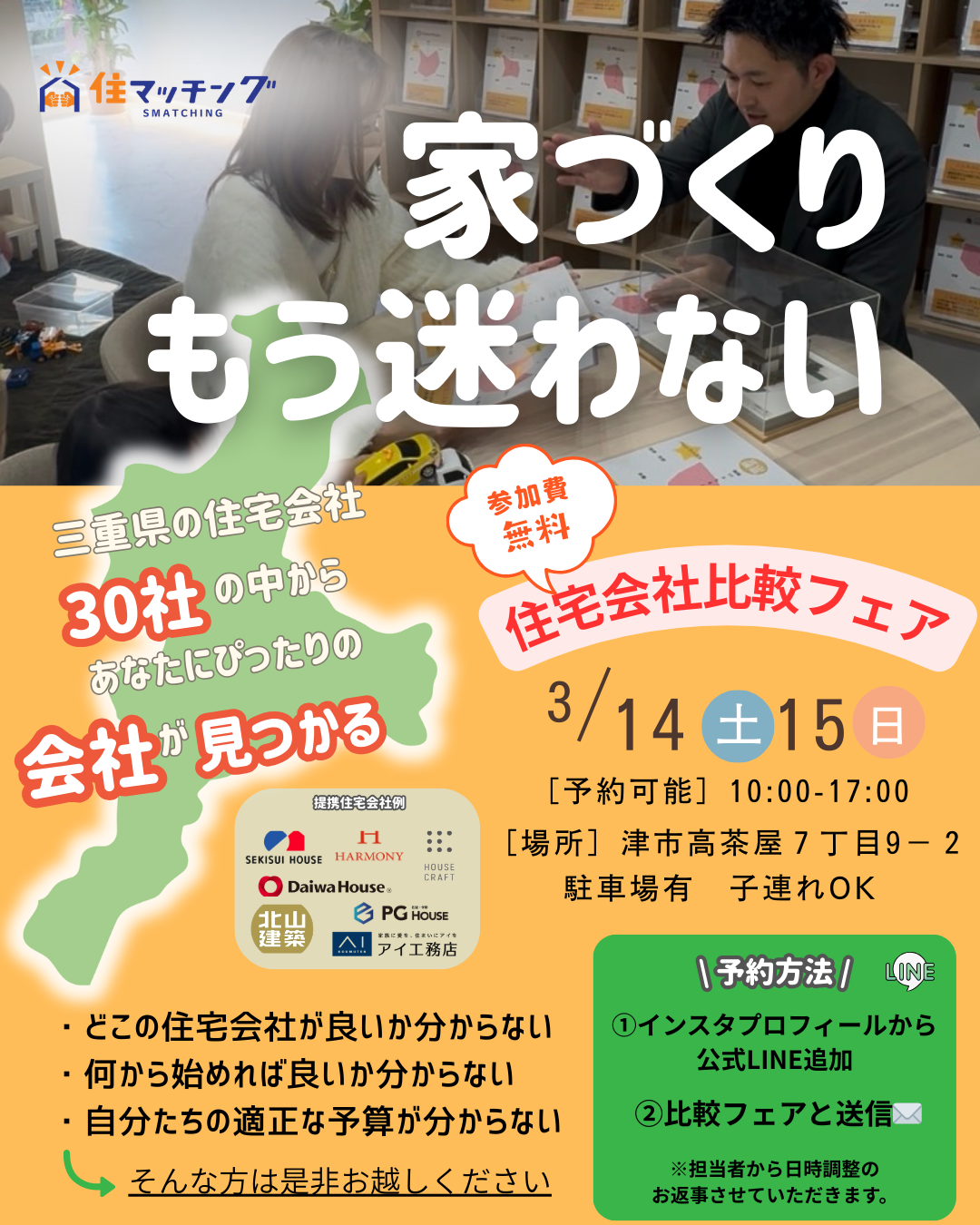 2026年3月14日(土)と15日(日)には「住宅会社比較フェア」というイベントも実施されるようです。
