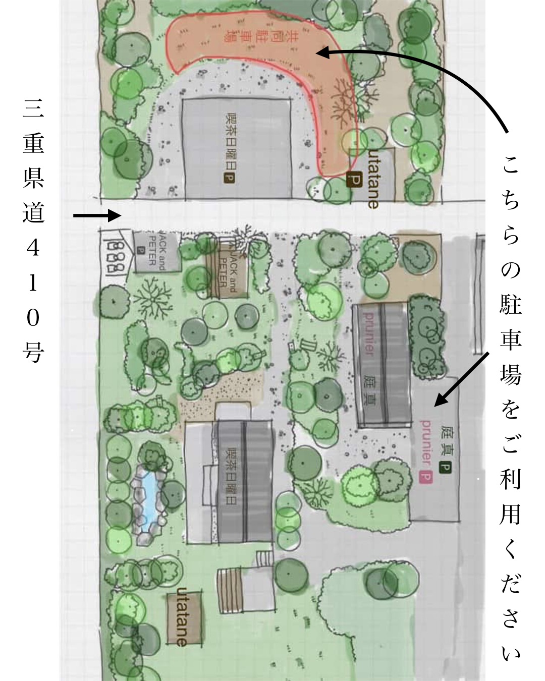 - 駐車場:prunier専用駐車場10台、GardenEarthの共同駐車場も利用可能